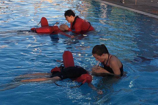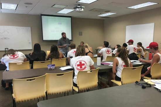 • In addition to lifeguarding skills and presentations, the training includes interpersonal and customer-service skills, with students responding to hypothetical scenarios in role-play exercises.