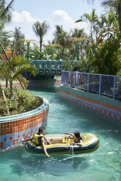 A lazy river not only surrounds Water Festival Island, but also epitomizes the park’s theming, which is partially inspired by one of the most popular events in the area, the Water Splashing Festival.