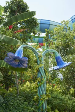 The park’s whimsical design is meant to create the feeling of an oversized botanical garden in the lush tropical environment.