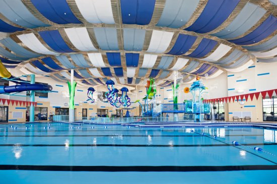 As is the norm, the Kroc organization stipulated that the 5,870-square-foot aquatics facility feature heavy theming. The property is located in a coastal city, so the design team quickly and naturally gravitated toward the concept of water and its non-literal expression. Decorative sea creatures and bubbles float above, among the blue, gray and white overhead panels that represent the ocean. Additionally, the play structure looks like an underwater mermaid palace. To secure the necessary funds for the elaborate decoration, the aquatic designer helped with fund-raising efforts. The lap lanes were designed for flexible programming to accommodate multiple activities, including swim lessons and lap swimming.