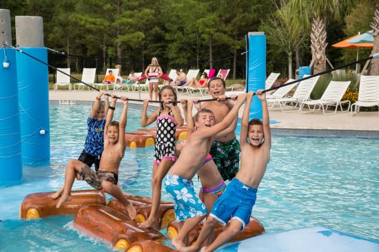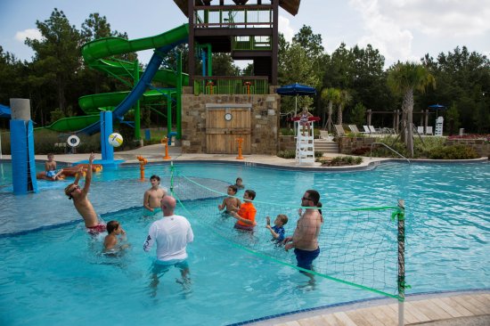 Water cannons, deck sprays and a toddler slide on the beach-entry area also add their own kind of action to the facility. The kiddie slide resembles a hollowed-out log to fit in with the woodsy theme.
