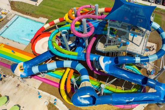 Covering nearly 523,000 square feet, the site includes a 22,000-square-foot wave pool, 14 water slides, a special water play zone for toddlers and several food and beverage options. A Kid Zone includes seven water slides and a play area with four splash-pad stations.