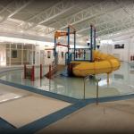 The highlight of the $7.5 million facility is a 6,863-square-foot, indoor leisure pool. Planned as a community attraction with lots of children’s play activities, the leisure pool features a beach entry and a number of amenities to entertain patrons of all ages. In this shallow-water pool is an interactive play structure highlighted by a toddler-friendly dump bucket; an air bubbler ring; three underwater benches, one with hydro-therapy jets; a spray ring mounted to the natatorium ceiling that produces a circular shower effect; a 19-foot-diameter vortex pool; a 17-foot-high, indoor/outdoor tube water slide; and a 7-foot-wide, 170-foot-long current channel.