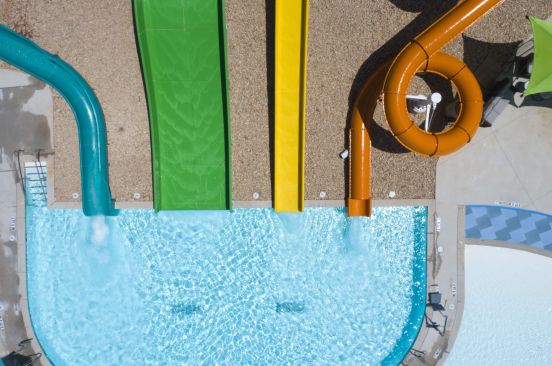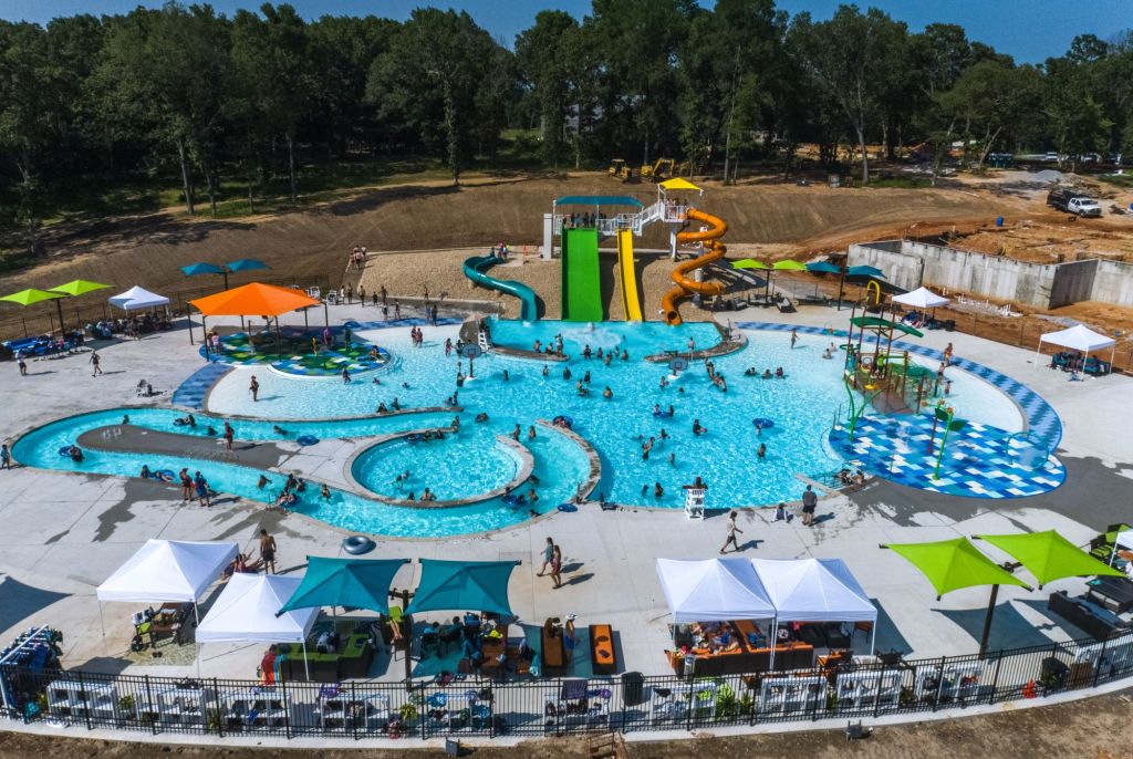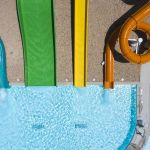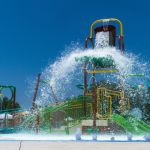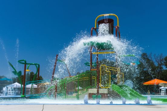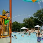 The active zone includes more stimulating and interactive waterfeatures and sprays, along with a 200-foot-long current channel, intermediate depth zone, water basketball area, amped-up splash pad in conjunction with an elevated play structure and a waterslide/plunge pool zone.