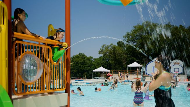 The multiple sloped entries help ensure that campers with mobility impairments, including those using wheelchairs, can easily enter and exit the pool. Adaptive equipment, such as pool lifts and waterproof wheelchairs, help those with significant mobility challenges to move independently.