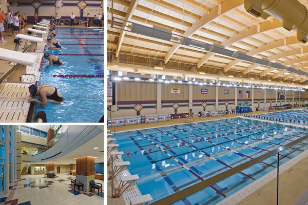 With its dual movable bulkheads, the large pool can accommodate swimming, diving and water polo competitions along with other aquatic programming. There’s also a state-of-the-art training/fitness center.
