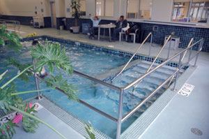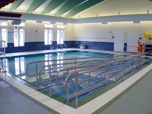 For those needing more intensive treatment, the Prescott Family Pool is a therapeutic, warm-water therapy pool. It includes an underwater bench with massaging water jets designed to either relax or stimulate muscles, depending on the rehabilitative need. The two-lane, walking access ramp allows for easier access into the pool and a UV filtration system helps maintain optimum pool water conditions.