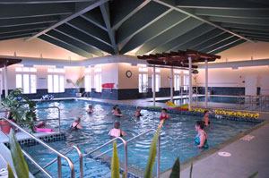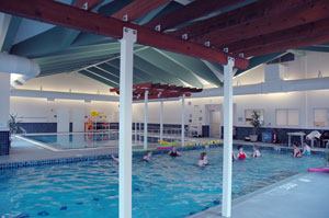 The Creekview Aquatic Center houses two pools intended to meet the various therapeutic and exercise needs of older adults. The John J. & Ethyl D. Keller Pool is a three-lane, temperature-controlled exercise pool, used not only for lap swimming, but also for water aerobic classes including “Light ‘n Lively” and “Aquatic Exercise.” Patrons enter easily and gradually down steps into shallow water.