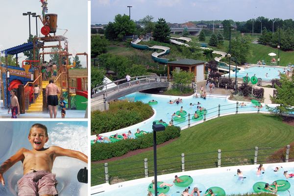 Open green space and 8 acres of water attractions, including eight water slides, a 600-foot lazy river, two competition pools, zero-depth area, spraypark, diving well and two concessions.