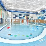 A 4,000-square-foot recreational pool draws leisure swimmers and those seeking instruction. It features four 25-yard lap lanes, stair entry, zero-depth area with play features and a basketball goal. A built-in shelf provides a place for children to wait their turn during swim lessons.