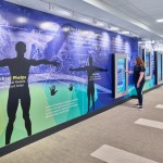 To motivate visitors and competitors, the facility showcases tributes to famous athletes, some of whom hail from Evansville. In addition to the mural of Lilly King, an entire wall display chronicles the life and accomplishments of Mikaela Jenkins, a Paralympic gold medalist and Evansville native. The Wall of Champions shows King and Michael Phelps, and it features interactive monitors to teach about the town’s swimming history.