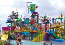 - Park offers a lazy river; wave pool; 15 water slides and one open-water swimming area; spray park; five-level play structure.