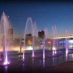 Located off to the side is an 850-square-foot deck fountain. Designed for splashing, the fountain includes a series of spray jets highlighted at night with color-changing lights computer-programmed to produce a multitude of facilitated sequences.