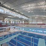 Suitable to host competitions, the facility boasts two full-colo… Suitable to host competitions, the facility boasts two full-color video boards, state-of-the-art timing systems, and a high-quality sound system. The bleachers accommodate up to 750 and wrap the finish line on three sides so spectators feel more connected to the action. With separate tanks, divers can enjoy warmer temperatures, while swimmers in the competition pool can work in cooler water. Outside the immediate swimming area are separate team and visitor locker rooms, an event meeting room, wet classroom, and accommodations for multiple kinds of media coverage.