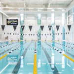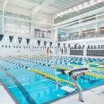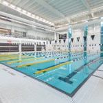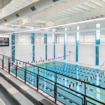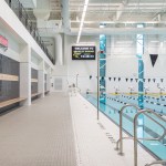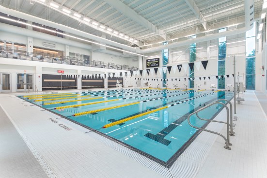 The natatorium includes an eight-lane, 25-yard competition pool with video matrix scoreboard and an elevated seating gallery for up to 200 spectators.