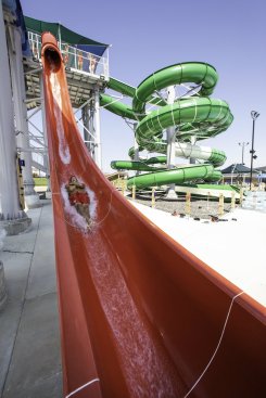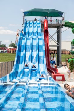 River Rapids Waterpark features a not-so-lazy river equipped with a wave generator that can be activated and shut down intermittently. Added to a portion of the 13,000 square foot river, the wave generator uses air to create small waves and offer a slightly different experience with each pass. The feature’s popularity has only validated this naming decision.