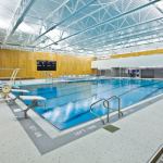 Opened in October 2009, the new natatorium features a 6-lane-by-25-yard competition pool, a 1-meter diving board, a 24- to 42-inch-deep learn-to-swim training area, and a toddler wading area with bench seating.