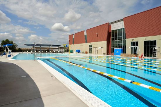 Indoor pools ensure that residents of the community can enjoy aquatic activities regardless of the season. Then the outdoor pool, surrounded by an expansive deck and shade structures, becomes a hub for summer activities and special events such as Family Fun Fridays and “Dive-In” movies.
