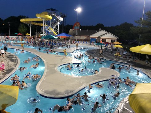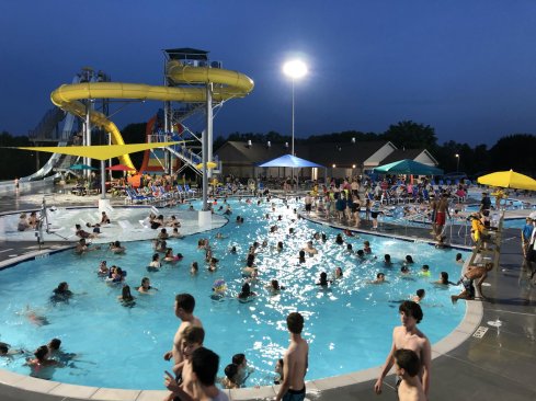 The city facility gained several new attractions so it could serve as the community waterpark. A 3,500-square-foot children’s pool features a large, multilevel aquatic play structure. A 4,900-sq. ft. leisure pool is enhanced by a large, shaded water lounge. The 5,600 sq. ft. lazy river contains a beach entry and underwater seating alcove. Body flume water slides drop into a dedicated 1,100 sq. ft. plunge pool.