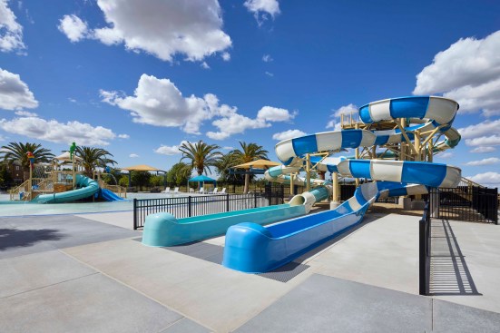 A 25-yard recreation pool with steps for children’s lessons allow for affordable and accessible recreation for area children and families. For entertainment, designers included dueling 35-foot-tall water slides, and an activity pool for small children and families.