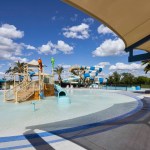 Serving as a visual focal point is a large sculpture called “Between the Toes,” designed and installed by artist Terrence Martin of Jagged Edge Metal Art. The 15-foot sculpture depicting flip-flops serves as an easy-to-identify meeting place, adds to the sense of community, and sets the mood for aquatic fun.