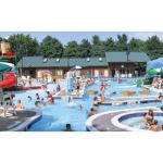 The zero-depth entry beach area is lined with spray features and lounge chairs. Tots can enjoy a small boat-themed slide while older children might eagerly await the tipping bucket or zip down the tube slide in the aquatic play structure that anchors the beach area. As the shallow water transitions to intermediate water, underwater bench seats are positioned to provide an opportunity for onlookers to take in the activity. Because this is the most popular part of the pool, there’s plenty of shade and seating, and restrooms and concessions are located in close proximity.