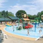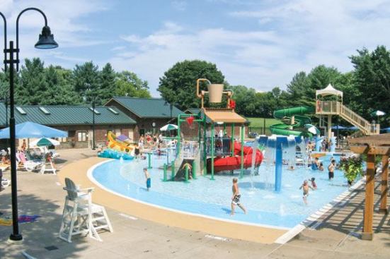 The intermediate depth area, with active and passive water, also includes an 8-foot-wide serpentine current channel. It offers a leisurely float around the pool, leading to a lagoon with hydrotherapy jets where swimmers can sit beneath a shade canopy and relax. There’s also floatable-walkway crossing activity.