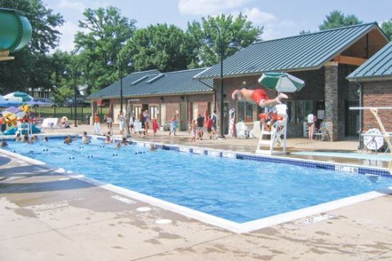 In developing Onesty Family Aquatic Center, designers embraced innovative design measures to reduce this project’s impact on the environment. The design collects all of the runoff from the parking lot, pool deck and bathhouse roof into two bioswales. These bioswales allow rainwater to infiltrate the ground slowly, reducing runoff and cleaning the storm water before it leaves the site. The pool was designed in a way that would not disturb any wetland areas along the stream, and most of the existing trees were preserved.