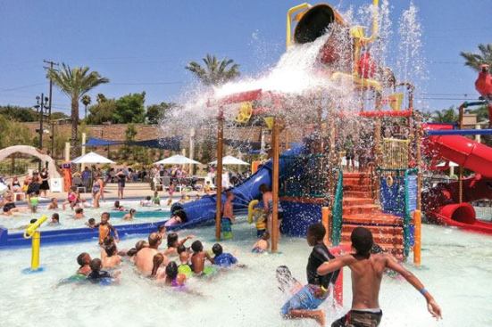 Completed in 2011 at a cost of $17.4 million, the Caribbean-themed waterpark space offers amenities including Riptide Reef, a tandem surf machine; Lil’ Mates Lagoon, a 5,300-square-foot pirate-themed splash playground for kids; Ne’er Endin’ River, an 11,700-square-foot continuous river with pools and bridges; and the Crow’s Nestslide tower, featuring three unique slides.