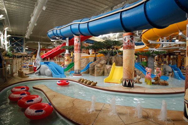 The new children’s area at the Wisconsin Dells Kalahari replaced an underutilized activity pool. It is unique in the fact that the pools, slides and lazy-river were all designed and constructed to be child-sized for a comfortable, entertaining and welcoming area for small children.