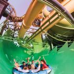 The designers of Tower of Poseidon, an approximately 65,000-square-foot expansion to Dubai’s Atlantis the Palm, Aquaventure Waterpark, had their work cut out for them. The renowned park had been designed to meet the high expectations of Dubai’s tourists. It not only had to hold the interest of visitors to Atlantis the Palm resort, but also draw guests willing to pay for admission. To meet the entertainment and adventure needs, the team added three sizable water slides — Boomerango, Anaconda and Dueling AquaLoop — along with a zip-line attraction.