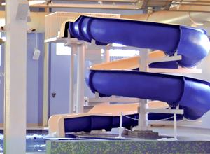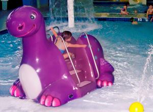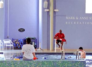 The Sternheimer Recreation Pool, built five years ago, is the center’s indoor funland. The facility’s piece de résistance is an 86-degree multipurpose recreation pool that has a purple dinosaur — small enough to be scaled by a tot. Surrounding the pool are two water slides, a lazy river, a sitting area with whirlpool-like jets, a mushroom-shaped waterfall and two spraypads.