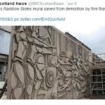 Art and history are preserved, notes @BBCScotlandNews, after sharing this image of murals that graced the walls of the Rainbow Slides pool complex in Scotland for 39 years before the building was demolished in March. Equally as cool is that the very same company that built the pool in 1975, Ogilvie Construction, was there to save the murals. Read more about the story