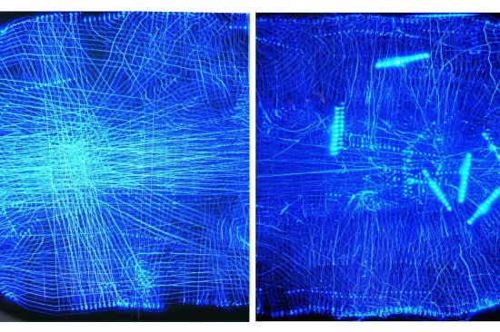 Figure 4 in the slideshow shows an example of the second method of testing pool coverage. In this test, LED lights were mounted on the automatic pool cleaner, and long-exposure photography was used to track the path of the pool cleaner around the surface of the pool as it performed a single cleaning cycle.