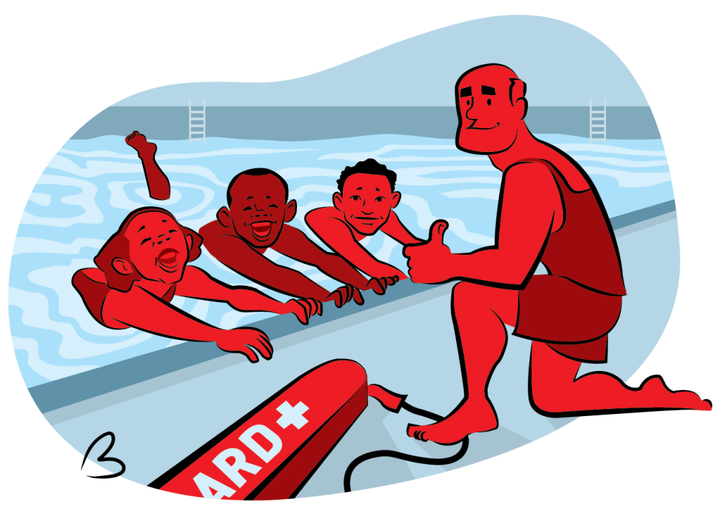 Many summer-school students who attend camp are African-American and Latino — and many families also qualify for free or reduced lunch based on household income levels. The USA Swimming Foundation reported in 2017 that results from a study by the University of Memphis and the University of Las Vegas found 64 percent of African-American children and 45 percent of Latino children have no/low swimming ability. The study found that children in a free/reduced lunch program are 63 percent less likely to have good swimming abilities and 79 percent of children in households with less than $50,000 of income have no/low swim abilities.