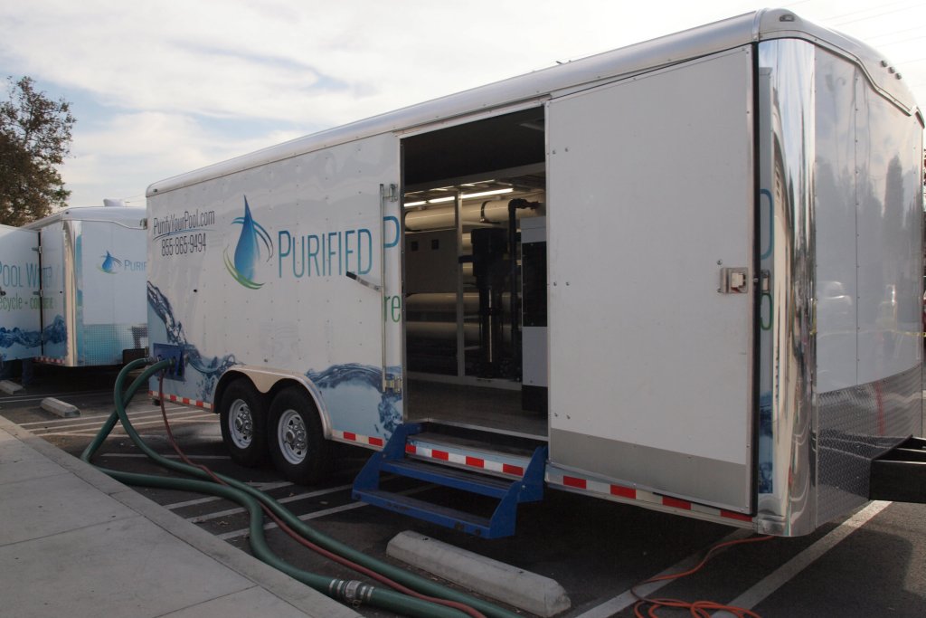 Filtration times vary, depending on pool size and TDS levels. A small HOA or apartment pool of 40,000 gallons, for example, could take 6 to 8 hours. On larger pools, we may need multiple trailers. So a half-million-gallon facility might take a couple days to process, using a couple trailers. In some cases, treatment can be performed in stages to prevent pool closures.