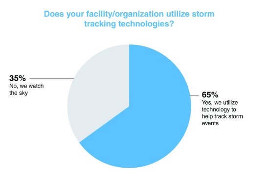 It was also assumed that a clear majority of facilities use technology in managing the risk of storms. Surprisingly, only 65% indicated they used technology to monitor storm conditions, while the remaining 35% simply watch the sky.