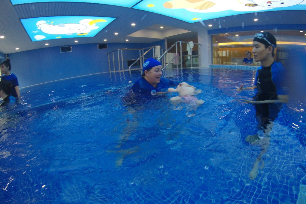 She recently returned from Suzhou, about 65 miles west of Shanghai, where she spent two days at a new swim school presenting the USSSA’s Infant-Toddler Education Workshop, which provides hands-on training with real babies. The course usually takes one day, but teaching through an interpreter adds time.