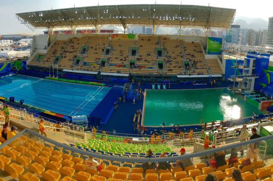 6) That time the pools turned green. Originally thought to be an algae problem, the water polo and diving pools eventually returned to normal. A statement from FINA ultimately cleared up any confusion: “The water tanks ran out of some of the chemicals used in the water treatment process. As a result the pH level of the water was outside the usual range, causing the discolouration.”