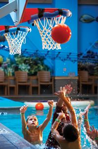 Waterpark description: This Key West-inspired indoor waterpark includes three 40-foot body and raft slides, Parrot’s Perch interactive play island, a dip-in theater and an adventure river.