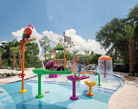 It’s tough to compete with the local attractions when designing a resort amenity in one of the top tourist destinations in the country. To meet this challenge, the team created “R Aqua Zone,” with features targeted for all age groups. The 3,230-square-foot space includes a play fortress, dump buckets, water slides, a rain tree, wet decks, pop-up jets and a kids’ pool. A teen/tween play area features two twisting water slides — one more than 120 feet long.