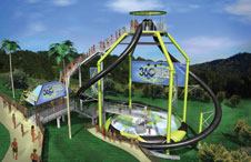 The 360Rush from Splashtacular Entertainment is a contemporary bowl slide designed to be a signature attraction. It allows two riders to spiral simultaneously down into an enormous “chase bowl.”