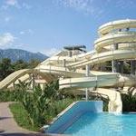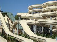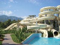 A Turkish beachfront waterpark resort makes the most of its wooded environment.