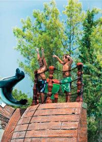 It also has a kid-sized water-play area with scaled-down versions of the more thrilling rides and numerous themed slides and fountains, and a unique pirate-themed water-play structure.