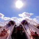 Another top ride is Crush ‘n’ Gusher, a Master Blaster-style water coaster. Opened in 2005, it’s designed to be a wild trip through a fruit-packing plant abandoned after “the storm.” The average length of each flume is 400 feet.