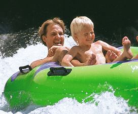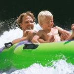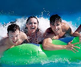 Barrier Reef, the park’s first themed ride, debuted in 1993. The “shark attack” attraction includes themed music and a waiting area that soaks anyone standing in the way. Shotgun Falls, a Western attraction added in 1994, takes riders down a short, fast slide dropping them more than 10 feet into the splash pool below. The newest themed rides are Hollywood Stunt Rider (an enclosed raft ride) and Alien Invasion (a family-style funnel slide).