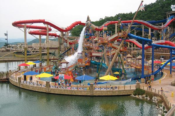 Ocean World waterpark, a section of Vivaldi Park Resort, is an aquatic oasis themed to resemble a watery Egypt — if it were placed in the middle of South Korea. The waterpark is divided into several distinct zones, offering something for everyone. There’s an indoor zone with a wave pool, a therapy center, the Extreme Zone with a stationary wave machine, and the newest area, the Dynamic Zone, which features a water coaster, bumper boats and a giant play structure.
