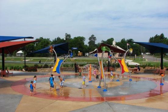 Completed in 2011 at a cost of 250,000 the splash pad offers an interactive, entertaining escape for children. The project includes shade shelters; furnishings including benches, tables and trash receptacles; restrooms; decorative lighting; and ample parking.