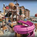 The “Mountain Modern” themed resort complex consists of a large curved wing of condominiums connecting to the core amenities. It includes an indoor waterpark, which currently boasts the first of four phases — retail area, arcade, deli, restaurant and bar. Not-yet-completed timeshare units (by others) will arc in the opposite direction, effectively surrounding the outdoor waterpark, which also represents the first phase of a multiphased aquatic design.