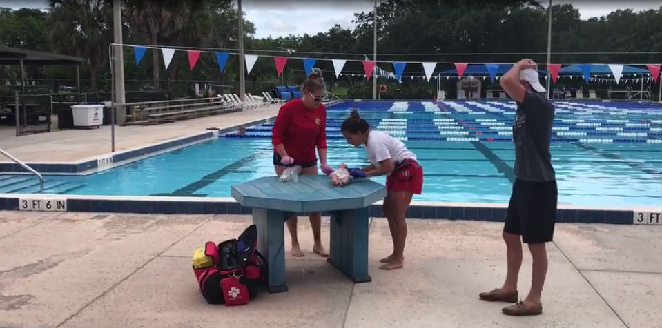 Right out the gates, Team Davie proved formidable competition. The group made its mark with back-to-back wins, beginning with May’s technically difficult baby-rescue drill. The Florida crew then followed up with a sweeping victory in June, placing four of its teams in the Top 4— a Summer Lifeguard Challenge first! In that drill, Team Davie was tasked with sending two rescuers to save six victims. Not easy.